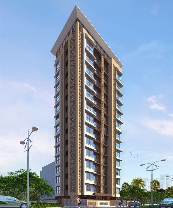Concept : The entire G+13 storeys residential building is the colour combination of brown and white masses and having vertical elevation treatment playing with chajja, fins and jali. The elevation treatment is done at the top & bottom of the building using jail and fins as a major elevation elements.