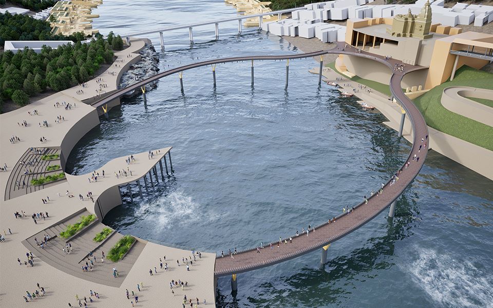 Concept : This project is initiated by Madhya Pradesh Tourism to cater to increasing numbers of devotees in Omkareshwar Temple. The project comprises of two aspects; Temple Precinct Development and Ghat Development. The projects aims to create sustainable and re-generative tourism.