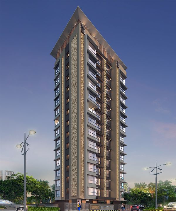 Concept : The entire G+13 storeys residential building is the colour combination of brown and white masses and having vertical elevation treatment playing with chajja, fins and jali. The elevation treatment is done at the top & bottom of the building using jail and fins as a major elevation elements.