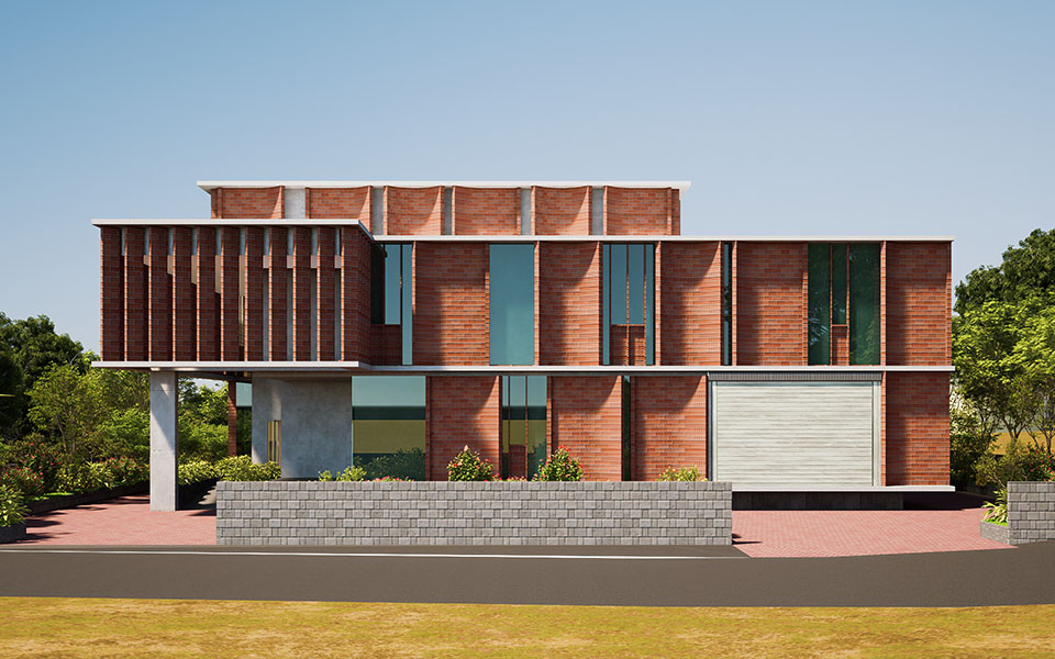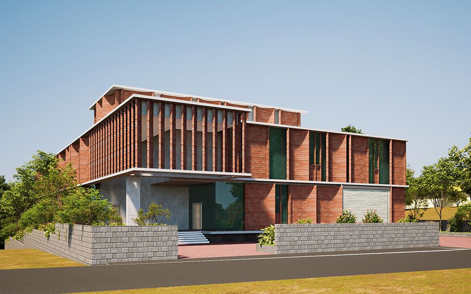 Its distinct architectural form — with curved walls and vertical fins — enhances natural light and thermal comfort. Materials like exposed RCC and MCM brick echo regional aesthetics while supporting durability.