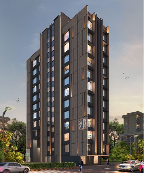 planned with balconies. Parking is accommodated in separate tower at rear side of the building and small garden is planned in the front.